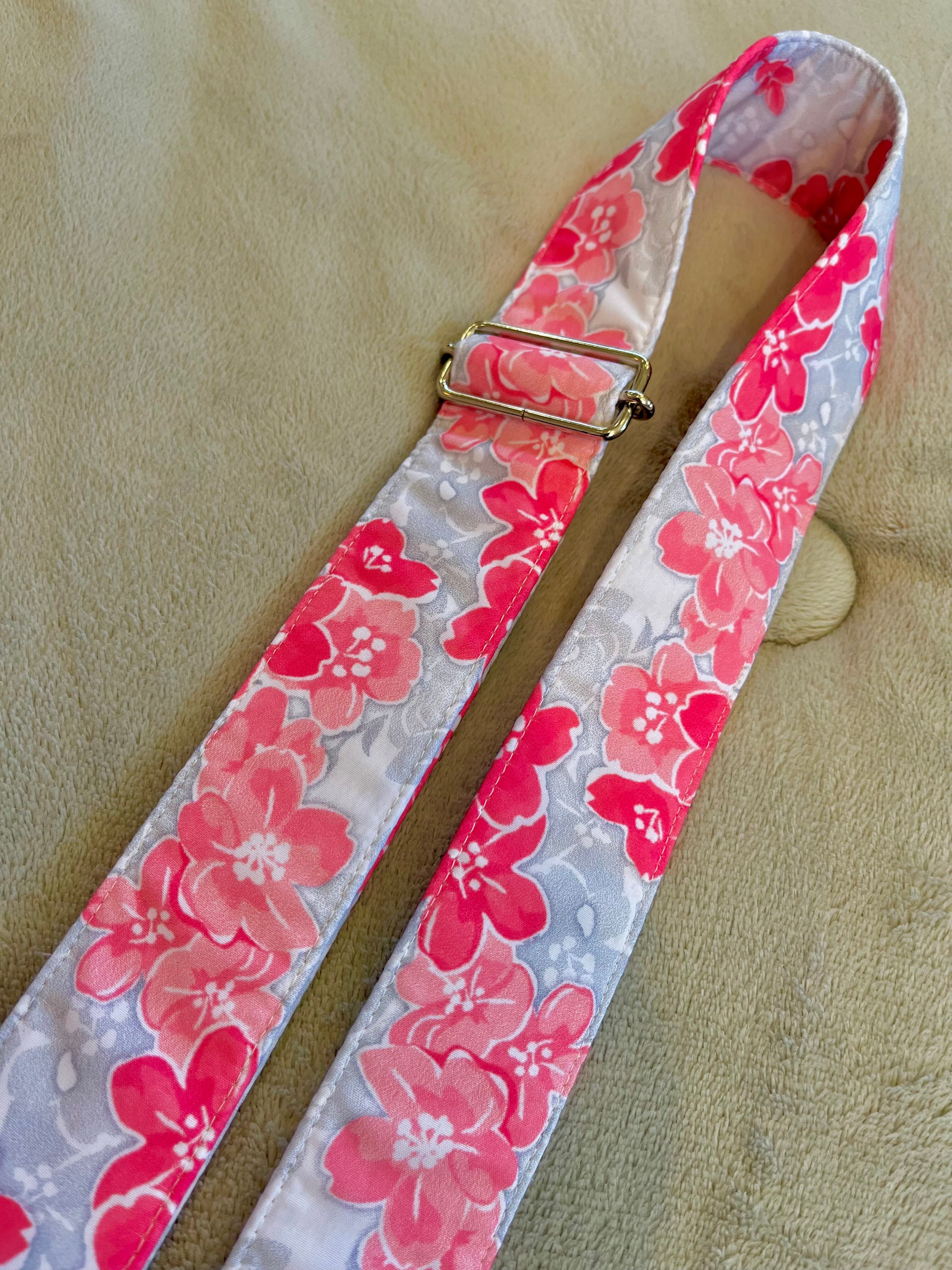 ピンクのお花柄ウクレレストラップ4センチ幅