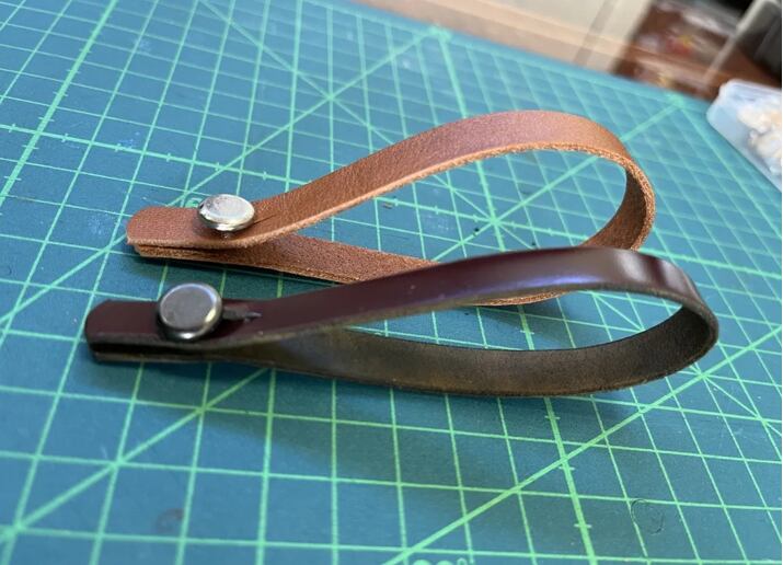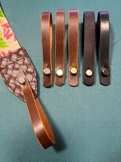 幅はいずれも15ミリです。色は焦げ茶色。中央の金具の色は金色・いぶし金・銀・メタル黒よりお選びいただけます。ウクレレのペグの色やお好みでお選びください。